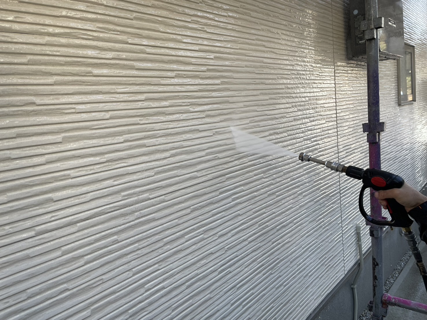 太陽塗装です! 本日は外壁の塗装前における、水洗いとコーキングを行いました! いつもafterの写真を撮り忘れてしまうので、水洗いの投稿が続いてしまってます😅 【水洗い】